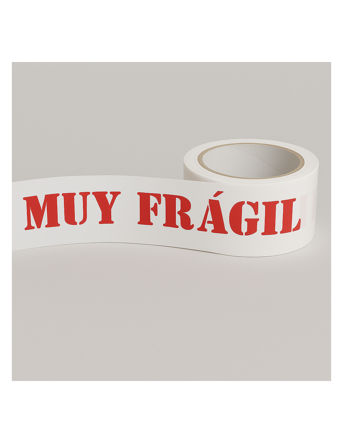Rollo de cinta adhesiva de alta resistencia fabricada con adhesivo solvente, ideal para el cierre seguro de cajas y embalajes. Su impresión en una tinta con el mensaje “MUY FRÁGIL” permite identificar fácilmente mercancía delicada y advertir sobre su manipulación durante el transporte y almacenamiento.